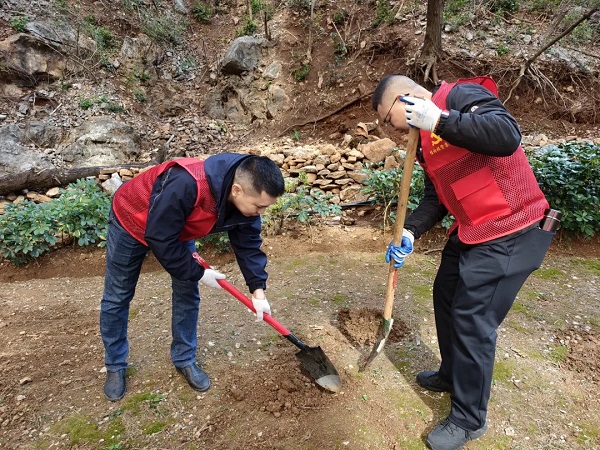活动现场暖意融融、干劲十足,志愿者们认真细致地栽种每一株桃树苗。汗水浸湿了衣衫,却挡不住大家植绿护绿的热情,欢声笑语间,一棵棵新栽的桃树苗迎风挺立,在和煦的春风中展现着勃勃生机,寄托着大家对生态美好、共建共享的殷切期盼。