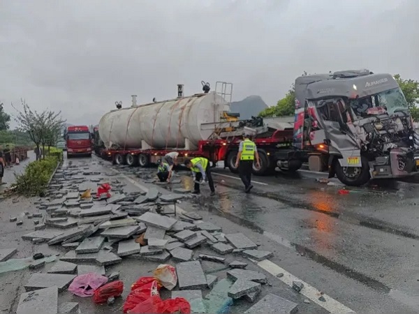 近日,321国道红日木材市场附近往桂林方向发生一起交通事故,一辆运输石块的货车与另一车辆发生碰撞,导致石块大面积散落,造成道路全线中断,交通瘫痪。阳桂公路公司迅速启动应急机制,组织多部门协同抢险,历经近两小时冒雨紧急作业,最终在早高峰来临前全面恢复道路通行,有力保障了公众出行安全。