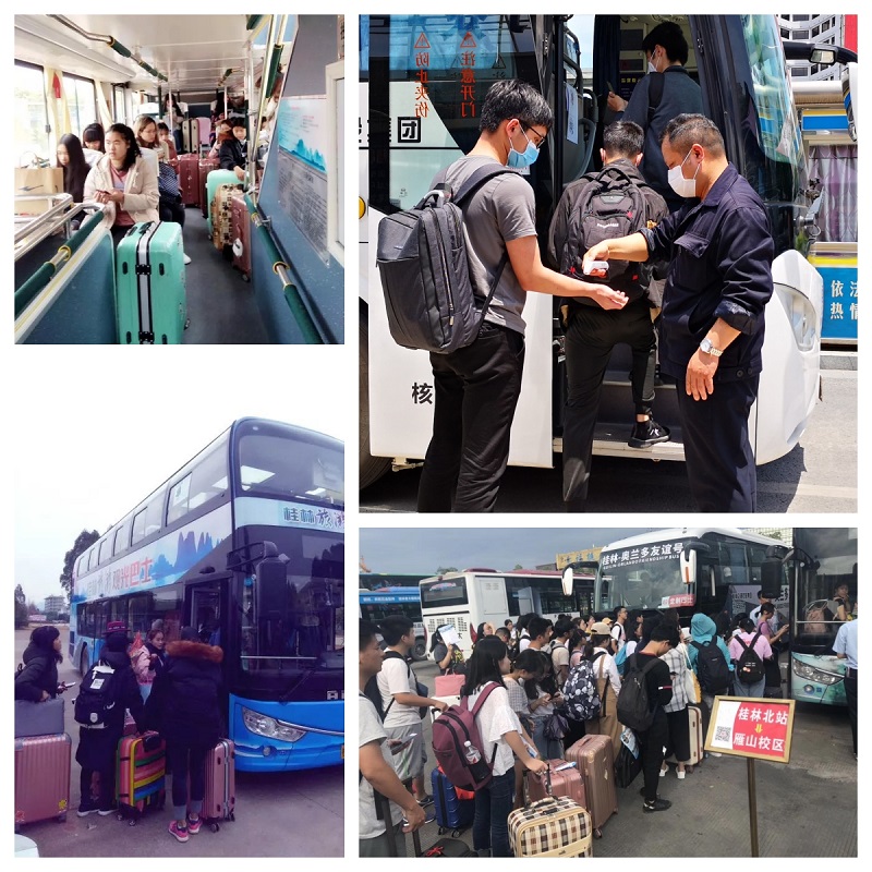 “最初那年是秋季开学的时候,我们发现桂林站、桂林北站到雁山那边的学生特别多,而且学生们行李多,出行不太方便。公司尝试着在桂林站调配了4辆公交车作为专线车,送学生返校。”驾驶员胡师傅回忆说。
